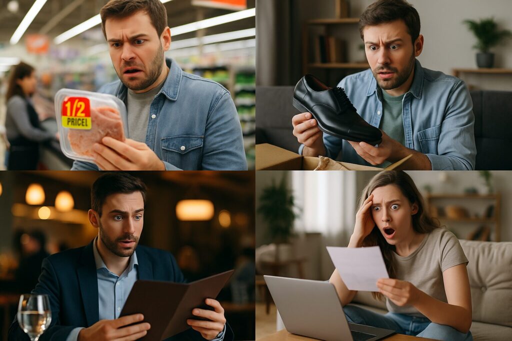 - スーパーで「半額!」と書かれたシールを見て大喜びで買ったら、実はpriceのシールが古いもので、レジで「こちら通常料金です」と言われて顔が真っ赤。