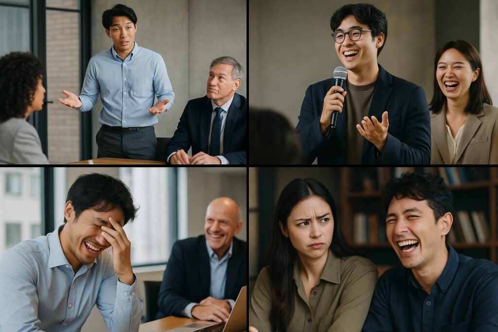 - 友人が英語でスピーチをしていて、「My purpose in life is to eat ramen every day」と熱く語った瞬間、通訳が「人生の目的は毎日ラーメンを食べることです」と訳して会場が笑いの渦に。