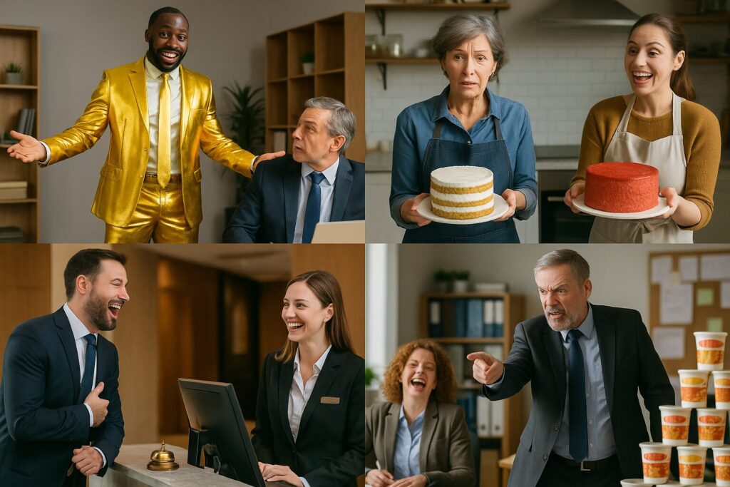 - 上司が「会社のstandardに従え!」と言った直後、自分のデスクの上にカップラーメンの山があるのを見つけて全員爆笑。