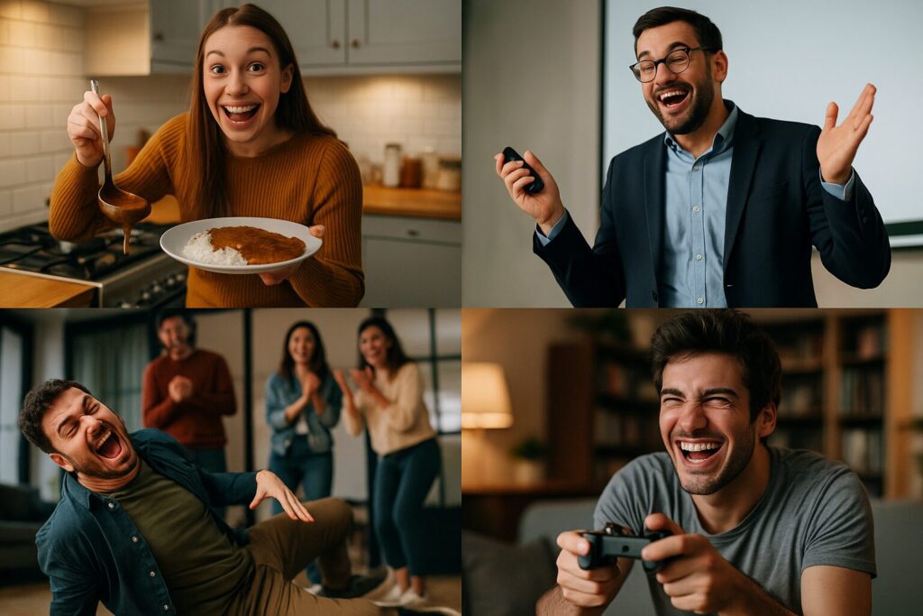 ダンスskillを披露しようとした友人がステップを間違え、見事に転んだ瞬間、音楽と完璧にタイミングが合って拍手をもらってしまった。