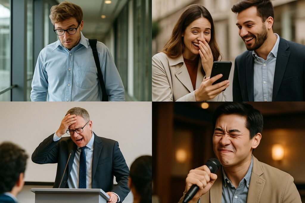 • 朝寝坊して急いで家を出たら、シャツを裏返しに着ていて、会議中に上司に指摘されたsituation。恥ずかしすぎて汗が止まらなかった。