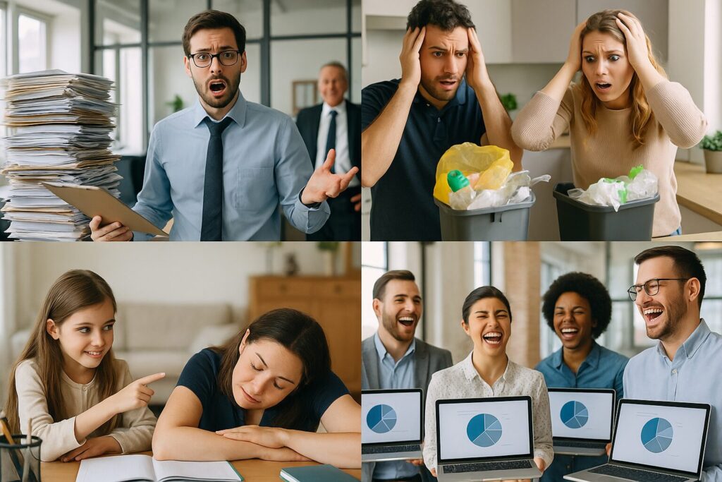 夫婦で家事のtaskを分担した結果、二人とも「ゴミ出しは相手のtaskだ」と信じていて、ゴミの日を3回連続で逃した。
