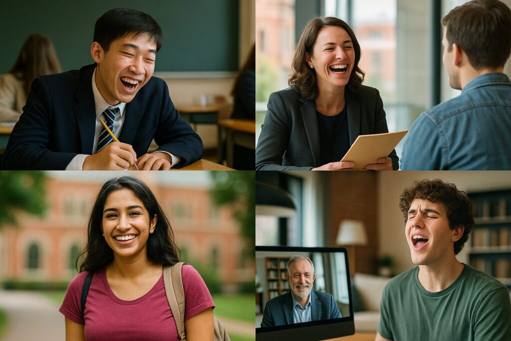 - 面接で「Why do you want to enter this university?」と聞かれ、「Because it’s close to my house.(家から近いからです)」と正直に答えて面接官が吹き出した。