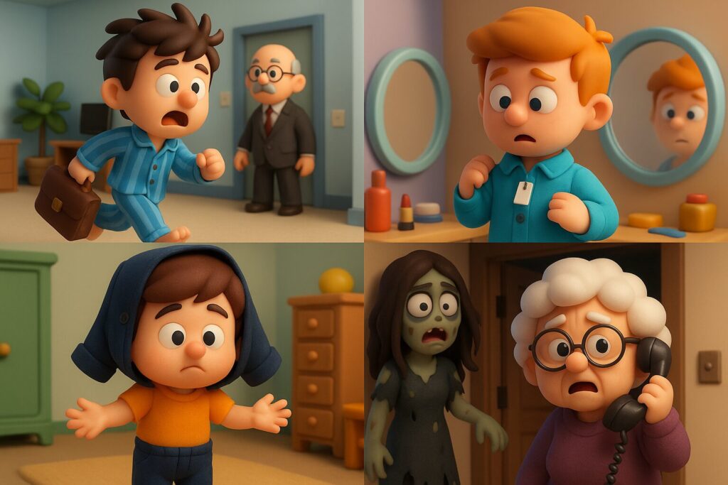 • 朝寝坊した彼が、歯も磨かずに急いでdressedした結果、上下パジャマのまま出社して上司に二度見された。