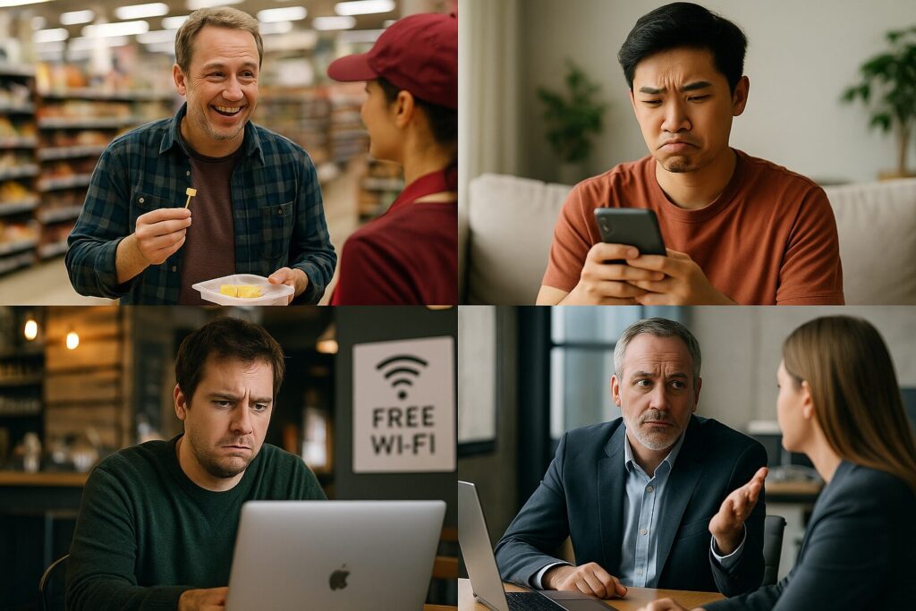 - カフェで「free Wi-Fiあります」と書いてあったのに、接続したら「登録料500円」と表示されて、心がfreeじゃなくなった。
