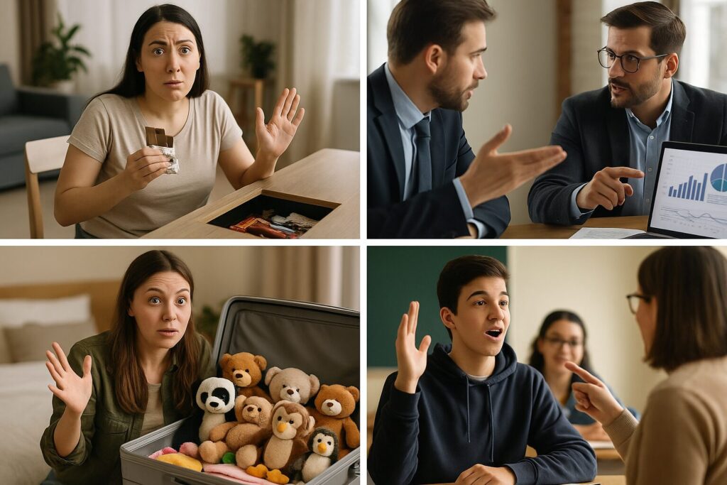 - 旅行に行く前に「荷物は最小限で行こう!」と言っていた友達のスーツケースから、なぜかぬいぐるみ20体が出てきて、「全部essentialなの!」と真剣な表情。