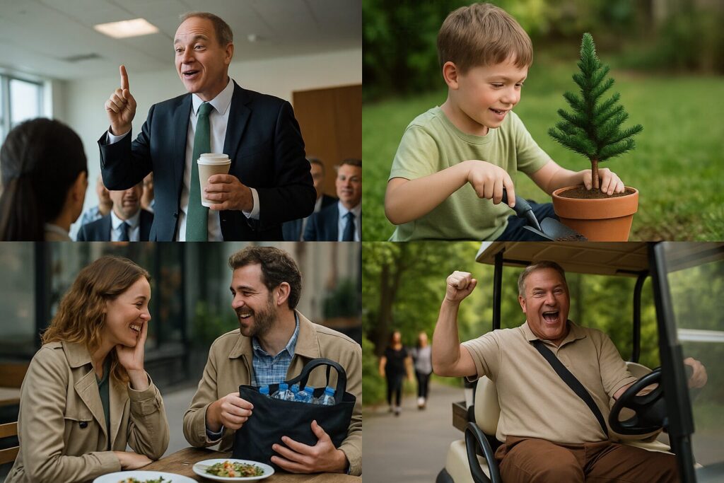 社員旅行で「environmentalに配慮して歩こう!」と提案した上司が、5分後には電動カートに乗っていた。