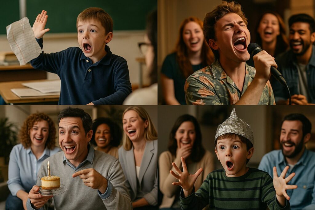 - 友人が「自分こそが伝説のカラオケ王だ」とclaimして歌い出したものの、音程が外れすぎて全員が大爆笑した。