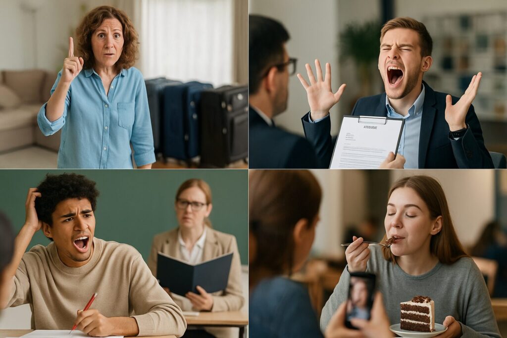 - 旅行前に「荷物は最小限でいい」と言っていたのに、母が「全部necessaryよ!」と言い張ってスーツケースが4個になった。