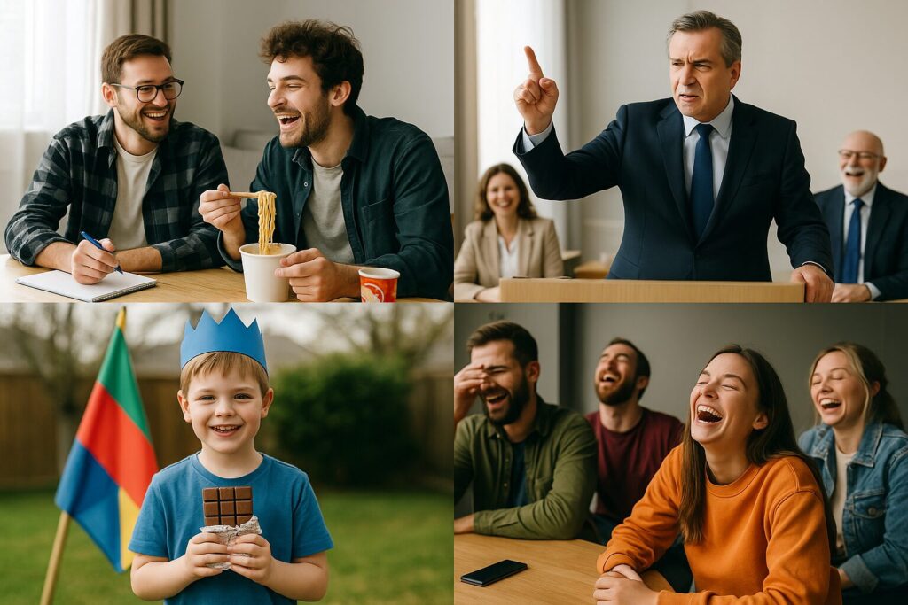 友人と「新しいクラブを設立(establish)しよう」と真剣に話し合った結果、実際にできたのは「カップラーメン研究クラブ」で、活動内容はただのおやつタイムだった。