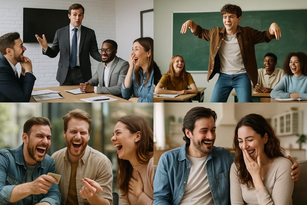 友人が「Imagine winning the lottery!」と話した瞬間、別の友人が「じゃあ俺は明日から社長!」と即答して妄想を膨らませ、周囲が爆笑。