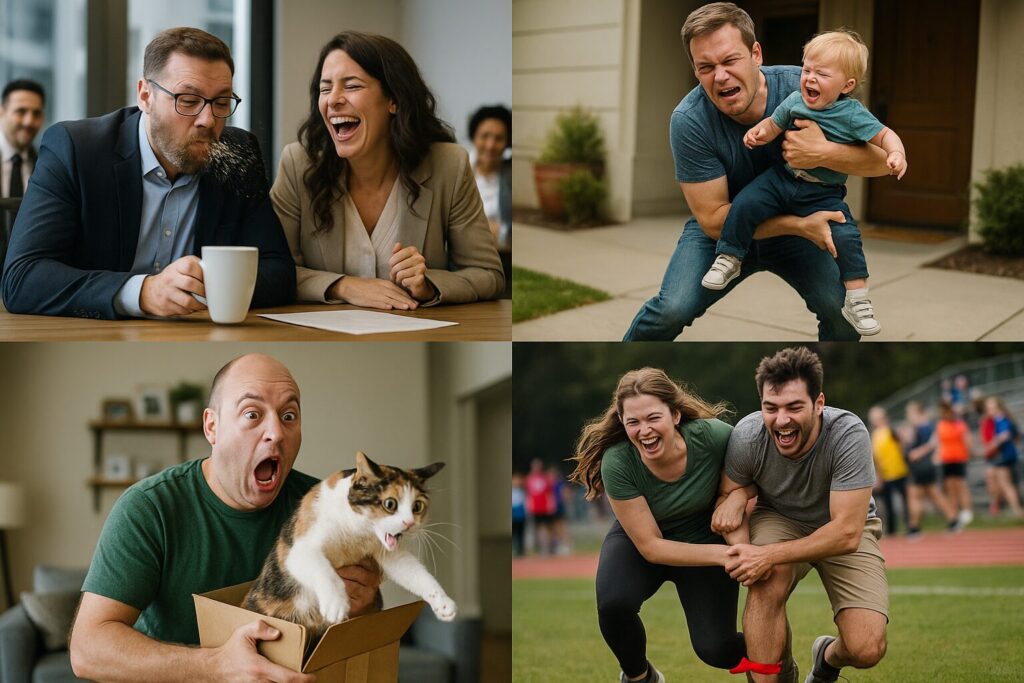- 子どもを抱っこしていた父親が「しっかりholdしてるから大丈夫!」と言った直後に、自分の足を踏んで転びかけた。