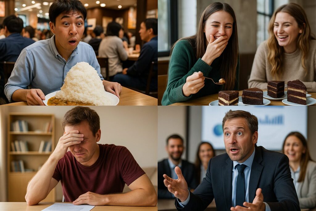 ダイエット中なのに「今日は特別」とケーキを一口だけ食べたら、気づけば皿の数がincreaseしていて、友達から「本当に痩せる気ある?」とツッコまれた。