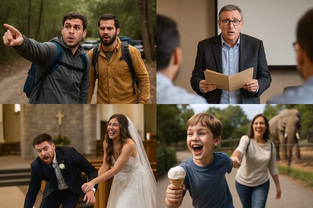 - 新郎が新婦をバージンロードでleadしようとしたら、転んで逆に引きずられていった。