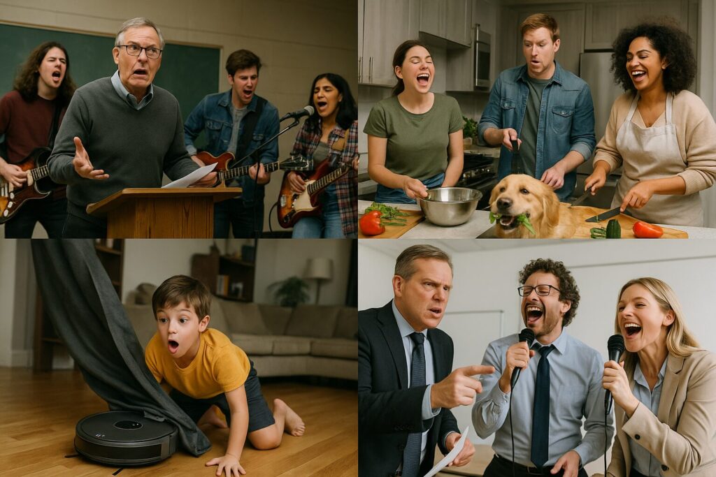 - 上司に真面目な会議の進行を頼まれたのに、同僚がカラオケマシンをinvolveしてしまい、会議が突然歌合戦に変わった。