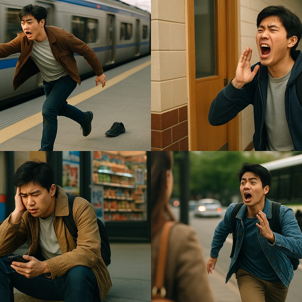 - 電車にギリギリで走って飛び乗ろうとしたら、靴だけ置いていかれて電車をmissしてしまい、周りの人に大爆笑された。
