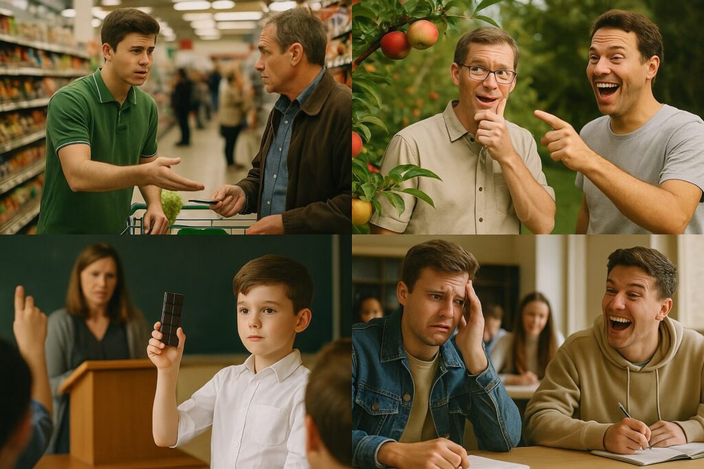 - 家庭菜園で友達に「この木は毎年リンゴをproduceするんだ」と自慢したら、友達が「木がリンゴを監督して舞台に立たせるのか?」と想像して爆笑になった。