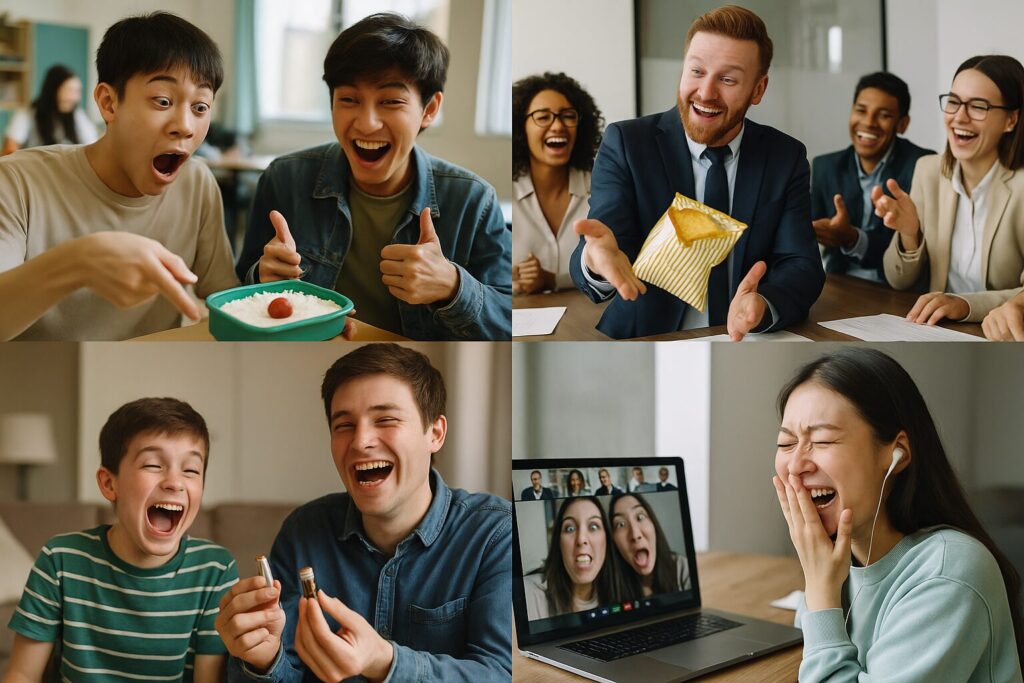 会議中に上司が「資料をshareしてください」と言ったら、後輩が自分のお菓子(ポテチ)を配り始めて、場の空気が一瞬で和んだ。