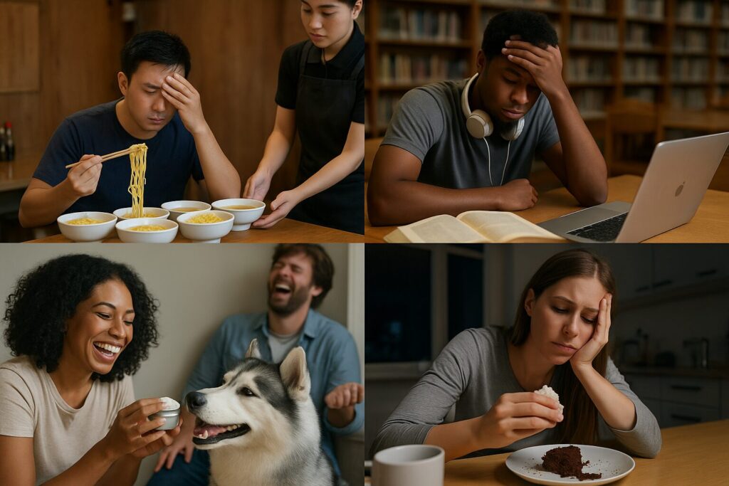 ダイエット中なのに夜中にケーキを全部食べてしまい、朝になって「努力がwasteになった」と泣きながらまたパンを食べていた。