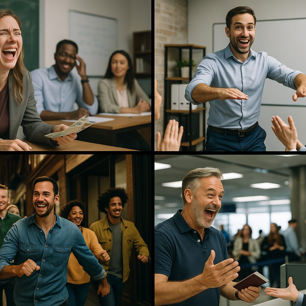 - 上司が「会議の資料をadvanceで準備しておけ」と言ったのを部下が勘違いし、踊りながら「前進ポーズ」の写真を大量に用意して提出してしまった。
