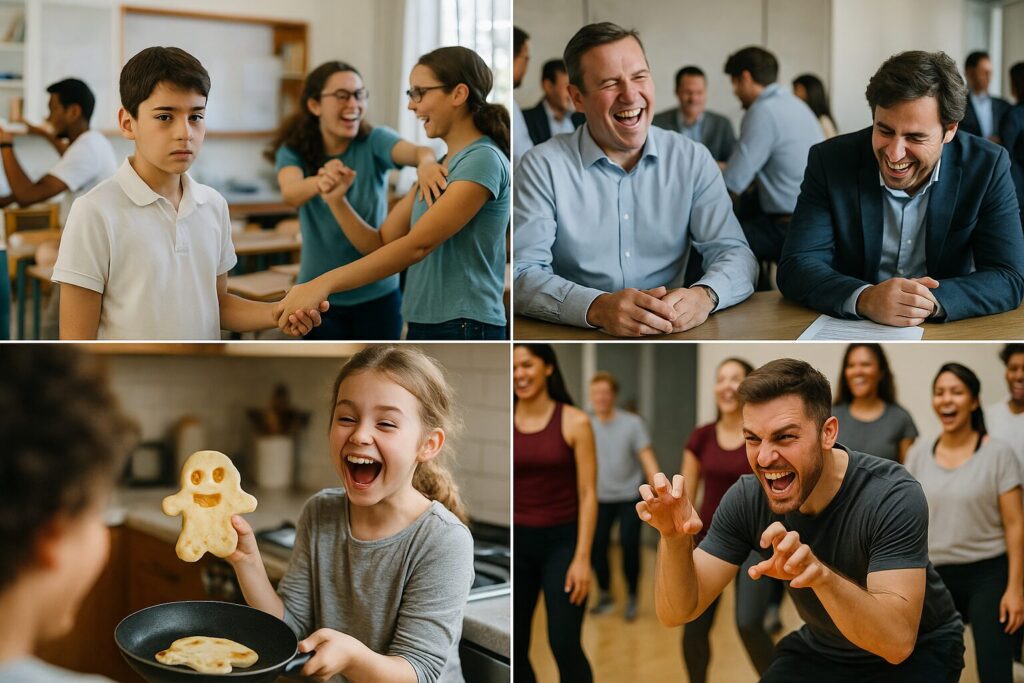 • 子どもがパンケーキの形を工夫しようとして「ハートをformするんだ!」と言いながら焼いたら、どう見ても“おばけ”の形になっていて家族が大笑い。