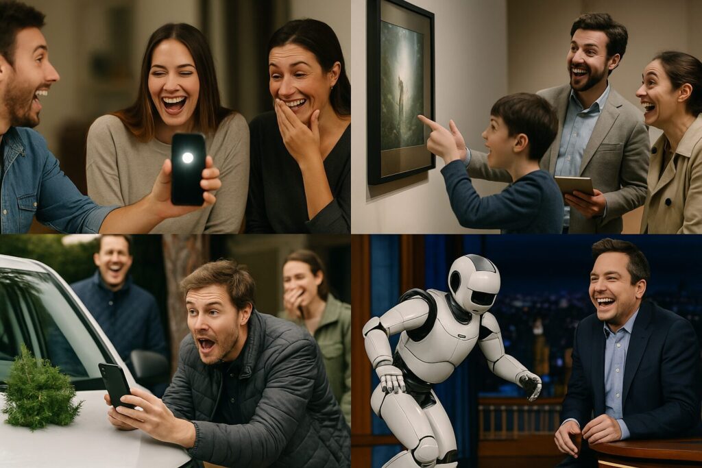 - テレビ番組で司会者が「このロボットの驚きのfeatureはこちら!」と紹介した瞬間、ロボットが転んで動かなくなり、スタジオ中が爆笑に変わった。